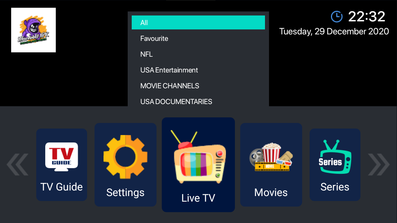• Supports Live TV, EPG, Catch Up. Movies & Series
