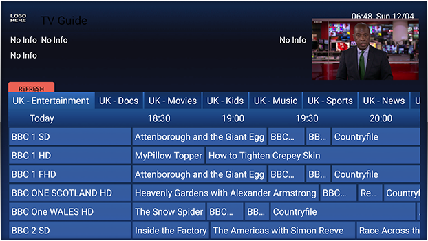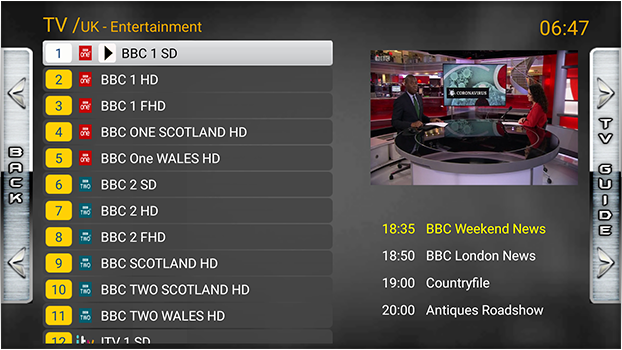 • Supports Live TV, EPG, Movies & Series