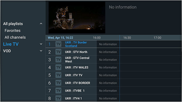 • Supports Live TV, EPG, Movies & Series
